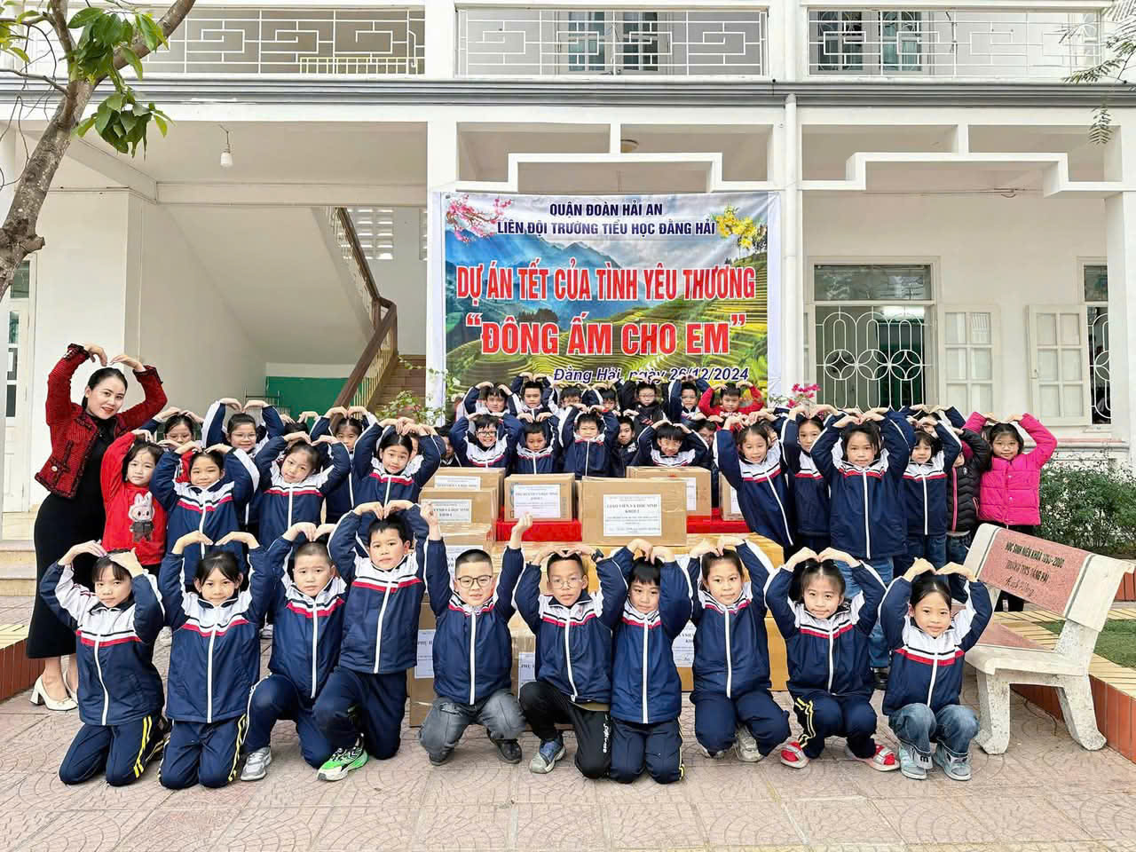 Hoạt động giao lưu, kết nghĩa - Dự án “Đông ấm cho em” của các thầy cô giáo và các em học sinh trường Tiểu học Đằng Hải chắc hẳn đã chạm đến trái tim của nhiều người. Ngày 26/12/2024 tập thể giáo viên và học sinh trường Tiểu học Đằng Hải đã tổ chức quyên góp tất, găng tay, mũ len, khăn quàng cổ, vở, bút,… cho các bạn học sinh Trường Tiểu học và THCS Tràng Lương - Xã Tràng Lương - là xã miền núi thuộc Đông Triều, Quảng Ninh. Mong sao các bạn ấy sẽ ấm áp hơn, luôn có sức khoẻ tốt để học tập. Hoạt động quyên góp sách vở, quần áo cũ cho các bạn nhỏ khó khăn, hoạt động này đã khơi dậy lòng nhân ái trong từng học sinh, giúp các em hiểu rằng niềm vui của Tết không chỉ là nhận, mà còn là cho đi, mang lại hạnh phúc cho những người kém may mắn hơn.