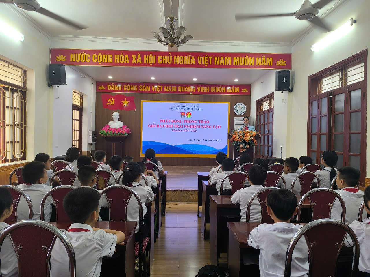 Thực hiện chương trình công tác Đội và phong trào thiếu nhi năm học 2024 - 2025; nhằm tạo môi trường để học sinh được trải nghiệm, khơi nguồn sáng tạo phát triển khả năng tư duy, ý tưởng sáng tạo của học sinh, Liên đội trường Tiểu học Đằng Hải đã triển khai thực hiện có hiệu quả mô hình “Giờ ra chơi trải nghiệm sáng tạo”. Thông qua mô hình hoạt động “Giờ ra chơi trải nghiệm, sáng tạo” giúp các em rèn luyện sức khỏe, thư giãn sau những giờ học căng thẳng. Từ đó các em mạnh dạn, tự tin, có sáng tạo trong quá trình chơi, còn giúp cho mối quan hệ giữa giáo viên và học sinh cũng như mối quan hệ giữa các em học sinh trong toàn trường được thân thiện gần gũi hơn. Các em được tham gia các trò chơi lành mạnh, tránh xa được các tệ nạn xấu. Chúc các em thiếu nhi luôn tìm thấy được niềm vui, sự sáng tạo trong các giờ ra chơi tại trường.