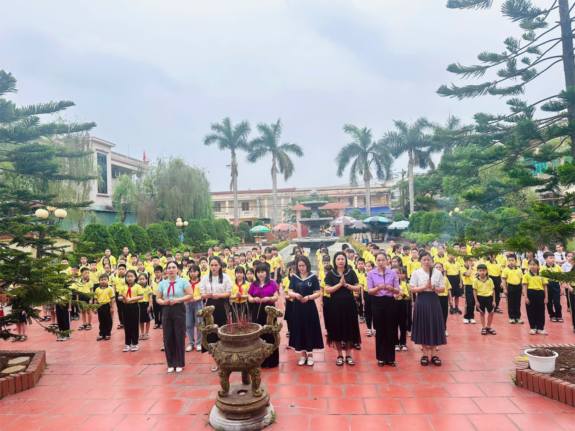 Hôm nay, trong không khí trang nghiêm, các em học sinh khối 3 đã làm lễ dâng hương tưởng nhớ các anh hùng liệt sĩ dưới lá cờ Tổ quốc. Sau đó, các em cùng tuyên thệ dưới cờ, chính thức trở thành đội viên của Đội Thiếu niên Tiền phong Hồ Chí Minh - m
