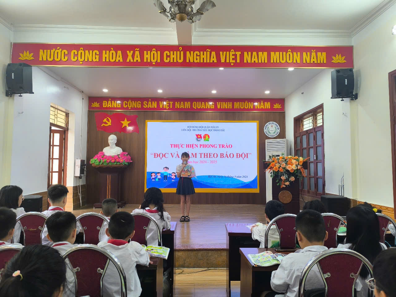 Ngày 16 tháng 9 năm 2024 Ban chấp hành Chi đoàn, Liên đội Trường Tiểu học Đằng Hải tổ chức Sinh hoạt chuyên đề “Mỗi tuần một câu chuyện đẹp, một cuốn sách hay, một tấm gương sáng” gắn với phong trào đọc và làm theo báo Đội”.