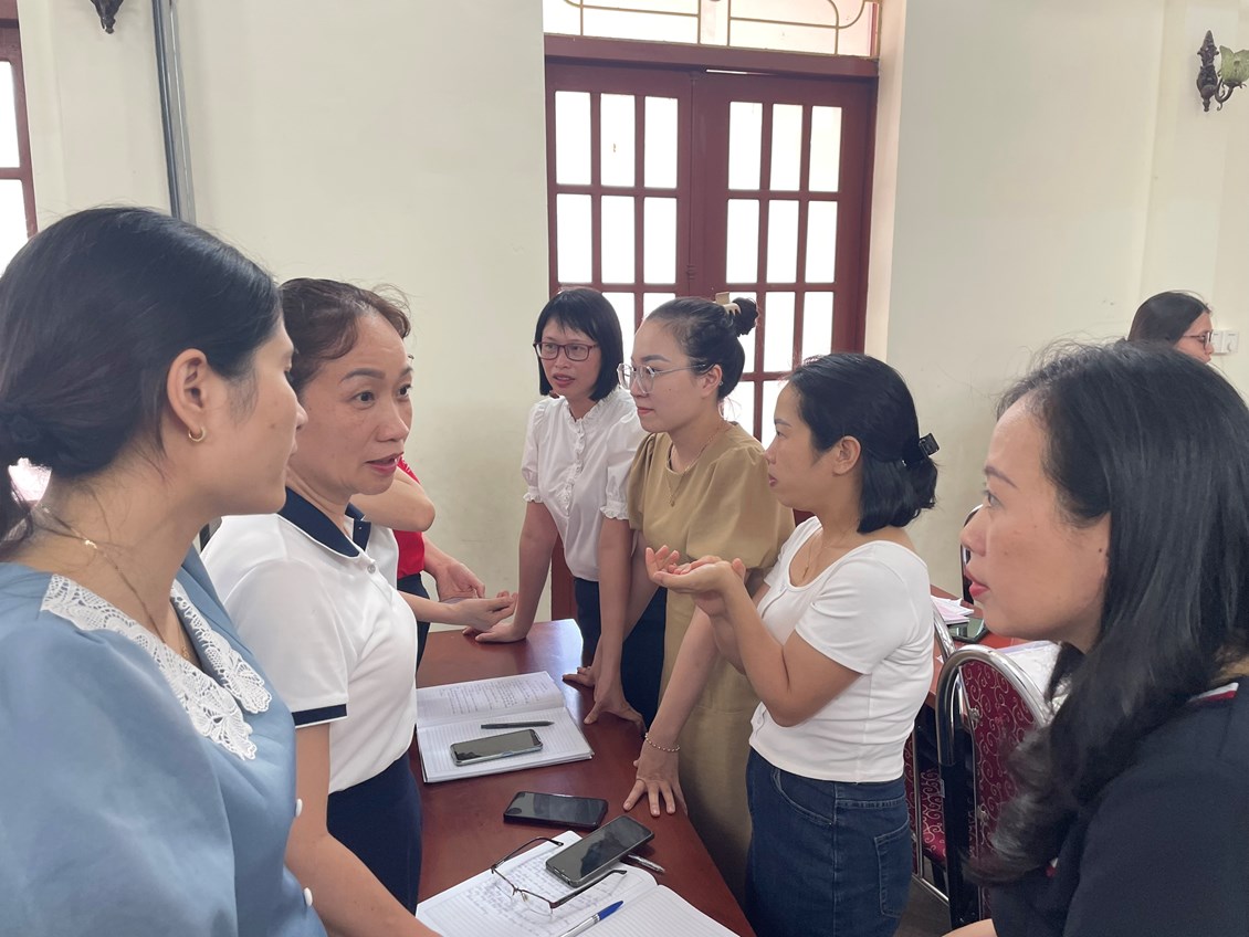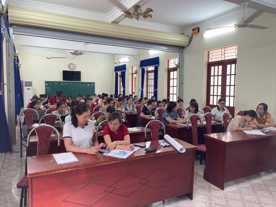 🌷 🌷 🌷 Cũng tại buổi chuyên đề, dưới sự điều hành của BGH, các đ/c GV tích cực thảo luận, chia sẻ để làm rõ hơn các nội dung về Thông tư 27/2020/TT-BGDĐT để đảm bảo triển khai thực hiện đúng quy định.