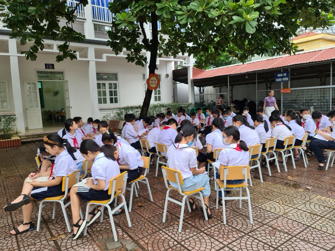 Tiết tập làm văn Tả cảnh trường em- lớp 5A2 do thầy giáo Trần Hoài Giang giảng dạy là một tiết học như vậy.