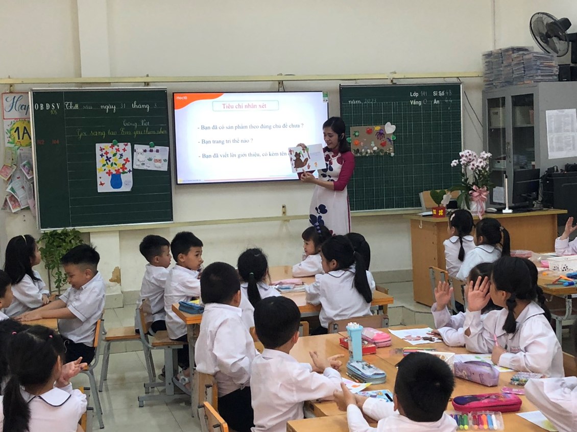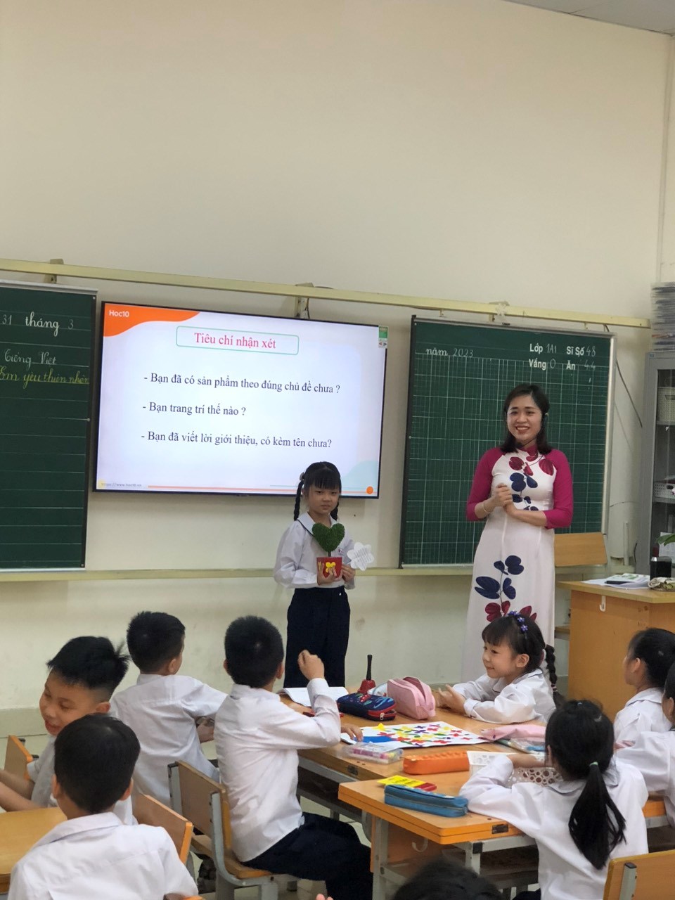 📚Trong tiết dạy, giáo viên đã vận dụng linh hoạt các phương pháp, hình thức tổ chức dạy học. Hoạt động cô trò nhịp nhàng. Học sinh tích cực tham gia vào bài học. Giáo viên nhận xét, đánh giá tư vấn kịp thời, hiệu quả. Học sinh đã được thực hành tạo ra rất nhiều sản phẩm xinh xắn, ngộ nghĩnh dưới sự đồng hành chuẩn bị đồ dùng của PHHS. Điều này thể hiện sự gắn kết giữa cô giáo và PHHS.Ngoài ra, các con còn được viết lời giới thiệu nói lên ý tưởng về sản phẩm của mình để chia sẻ với các bạn và người thân.