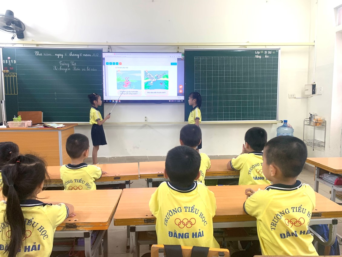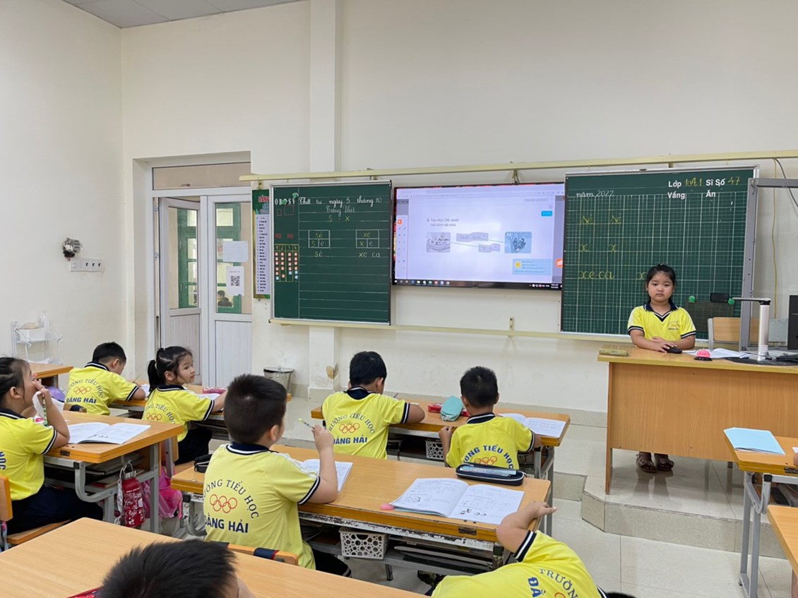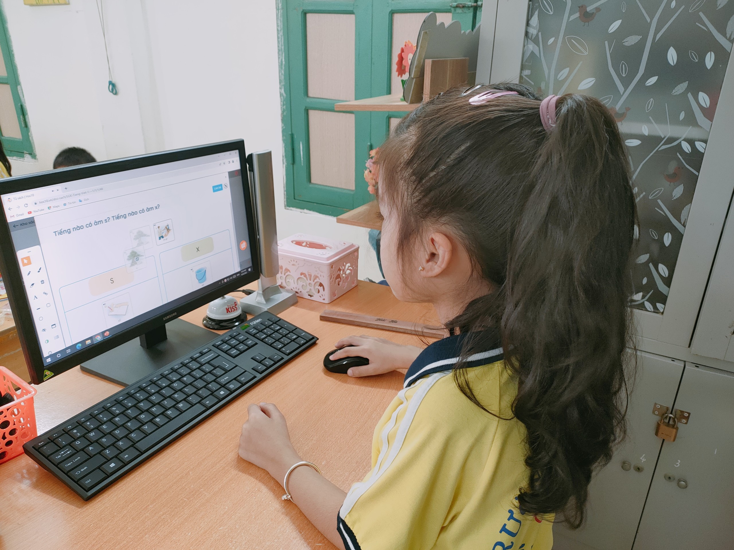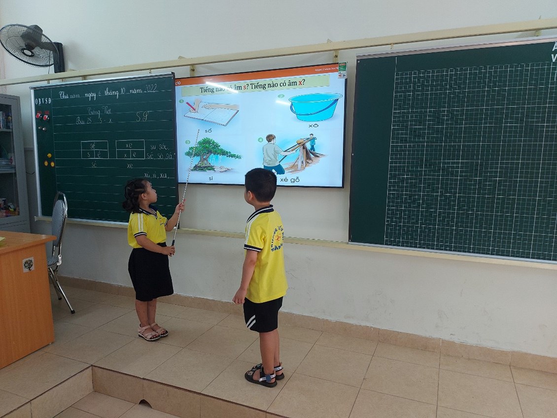 Việc ứng dụng CNTT vào dạy học có vai trò quan trọng trong giáo dục hiện nay, là một trong những nhiệm vụ trọng tâm góp phần đổi mới giáo dục và thực hiện chuyển đổi số. Mỗi bài giảng của giáo viên đã trở nên sinh động, hấp dẫn, gần gũi hơn với học sinh nhờ việc áp dụng CNTT vào bài dạy. Học sinh thực sự hào hứng, thu hút vào các hoạt động học tập. Dưới đây là một số hình ảnh các tiết học áp dụng CNTT của các em học sinh khối 1: