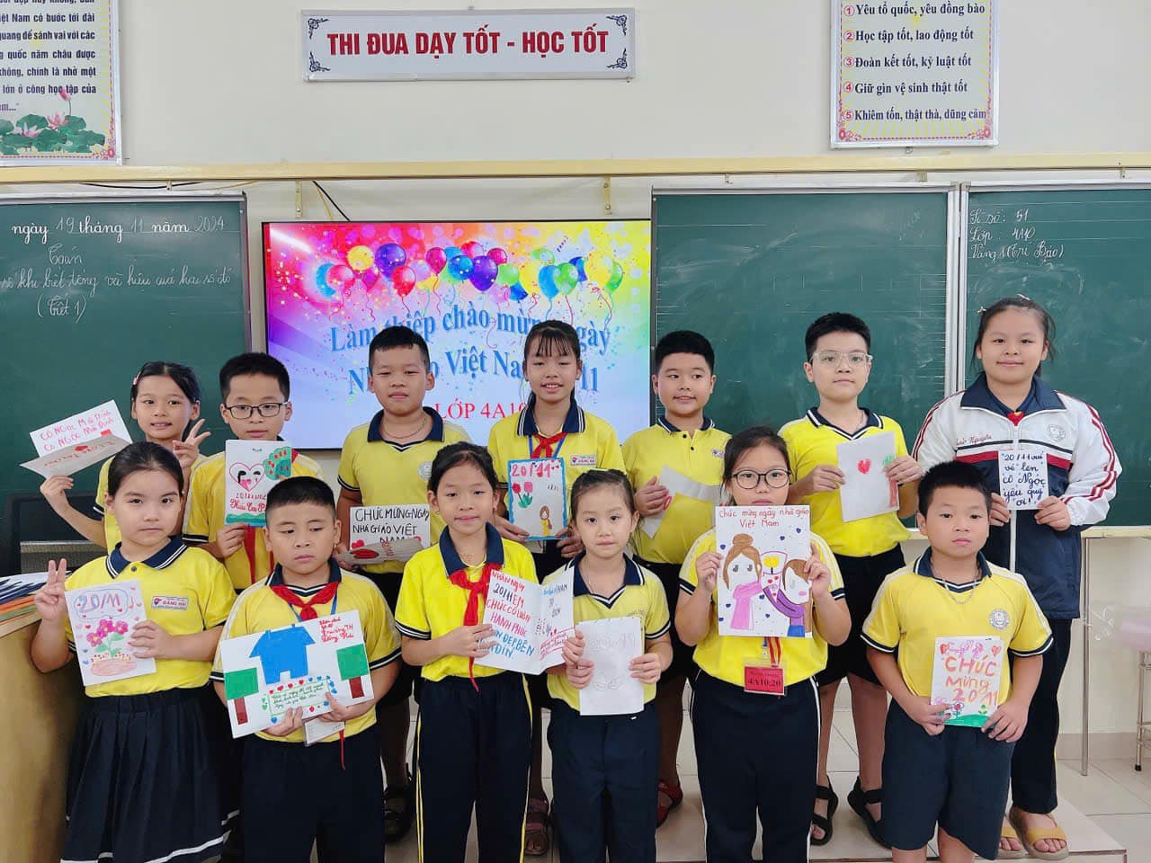 Hoà chung với không khí ấy, các em học sinh khối 4 Trường Tiểu học Đằng Hải làm thiệp tặng các thầy cô. Mỗi tấm thiệp với những lời chúc giản dị, chân thành nhưng chứa đựng tình cảm, sự tri ân dành cho thầy cô sẽ là một món quà vô cùng ý nghĩa. Chắc chắn khi cầm trên tay những tấm thiệp xinh đẹp và đọc những lời chúc yêu thương này, các thầy, cô giáo rất vui mừng và đầy cảm động trước tấm lòng của các con.