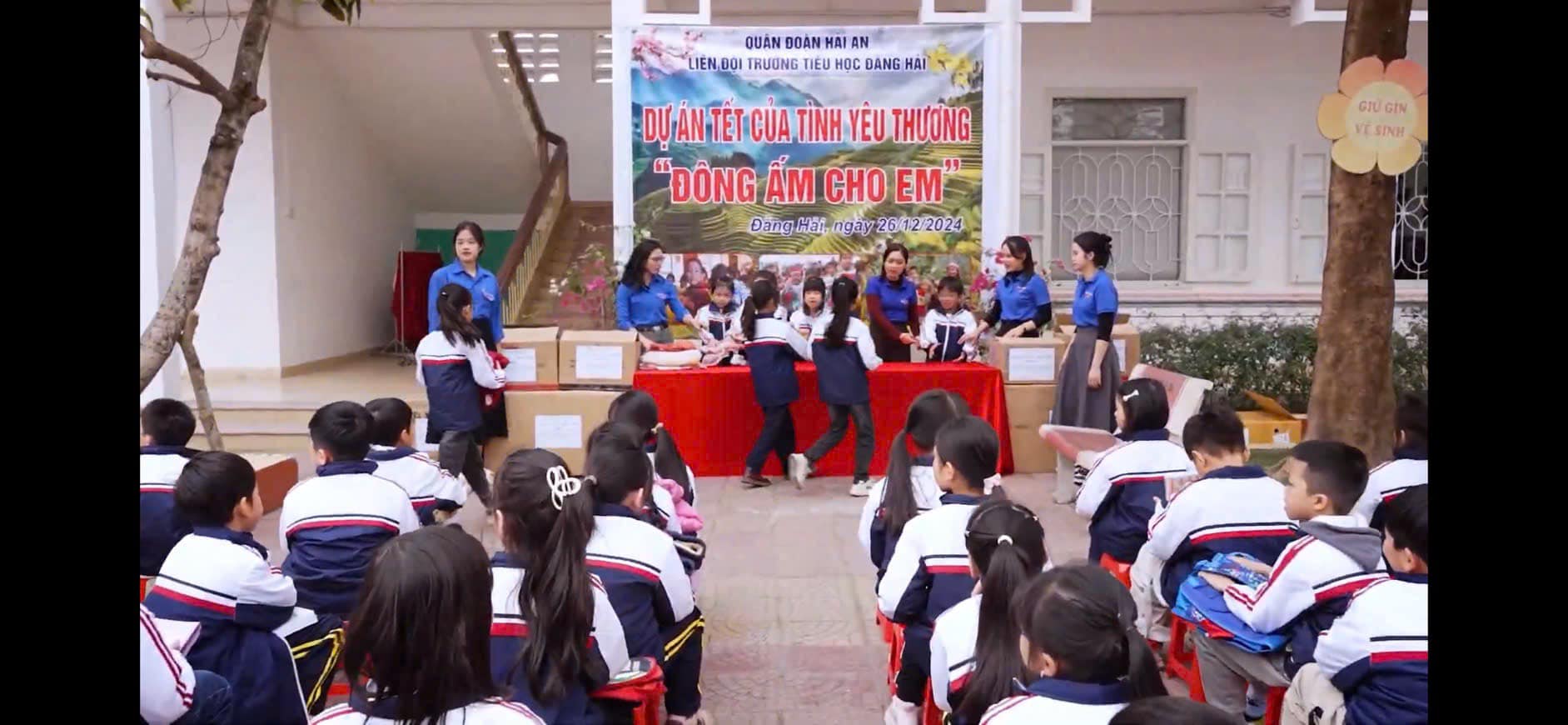 Dự án “Đông ấm cho em” của các thầy cô giáo và các em học sinh trường Tiểu học Đằng Hải chắc hẳn đã chạm đến trái tim của nhiều người. Ngày 26/12/2024 tập thể giáo viên và học sinh trường Tiểu học Đằng Hải đã tổ chức quyên góp tất, găng tay, mũ len, khăn quàng cổ, vở, bút,… cho các bạn học sinh Trường Tiểu học và THCS Tràng Lương - Xã Tràng Lương - là xã miền núi thuộc Đông Triều, Quảng Ninh. Mong sao các bạn ấy sẽ ấm áp hơn, luôn có sức khoẻ tốt để học tập. Hoạt động quyên góp sách vở, quần áo cũ cho các bạn nhỏ khó khăn, hoạt động này đã khơi dậy lòng nhân ái trong từng học sinh, giúp các em hiểu rằng niềm vui của Tết không chỉ là nhận, mà còn là cho đi, mang lại hạnh phúc cho những người kém may mắn hơn.