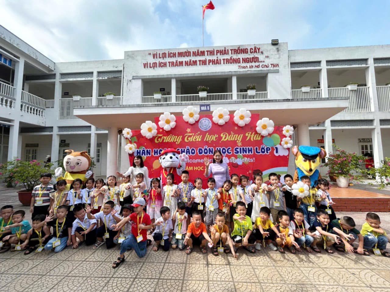 Từ hôm nay, các em học sinh lớp 1 sẽ cùng nhau học tập, cùng nhau vui chơi dưới mái trường Tiểu học Đằng Hải – ngôi trường với bề dày thành tích trong nhiều năm qua, với đội ngũ các thầy cô giáo tâm huyết, yêu nghề mến trẻ. Trường Tiểu học Đằng Hải sẽ là NƠI CÁC EM ĐƯỢC YÊU THƯƠNG VÀ TOẢ SÁNG, là mái nhà thứ hai, là nơi nuôi dưỡng những ước mơ tuổi thơ của các em. Chúc các em một năm học mới đạt được nhiều thành tích – mỗi em sẽ là một bông hoa đẹp góp phần tô điểm cho vườn hoa Đằng Hải thêm rực rỡ.