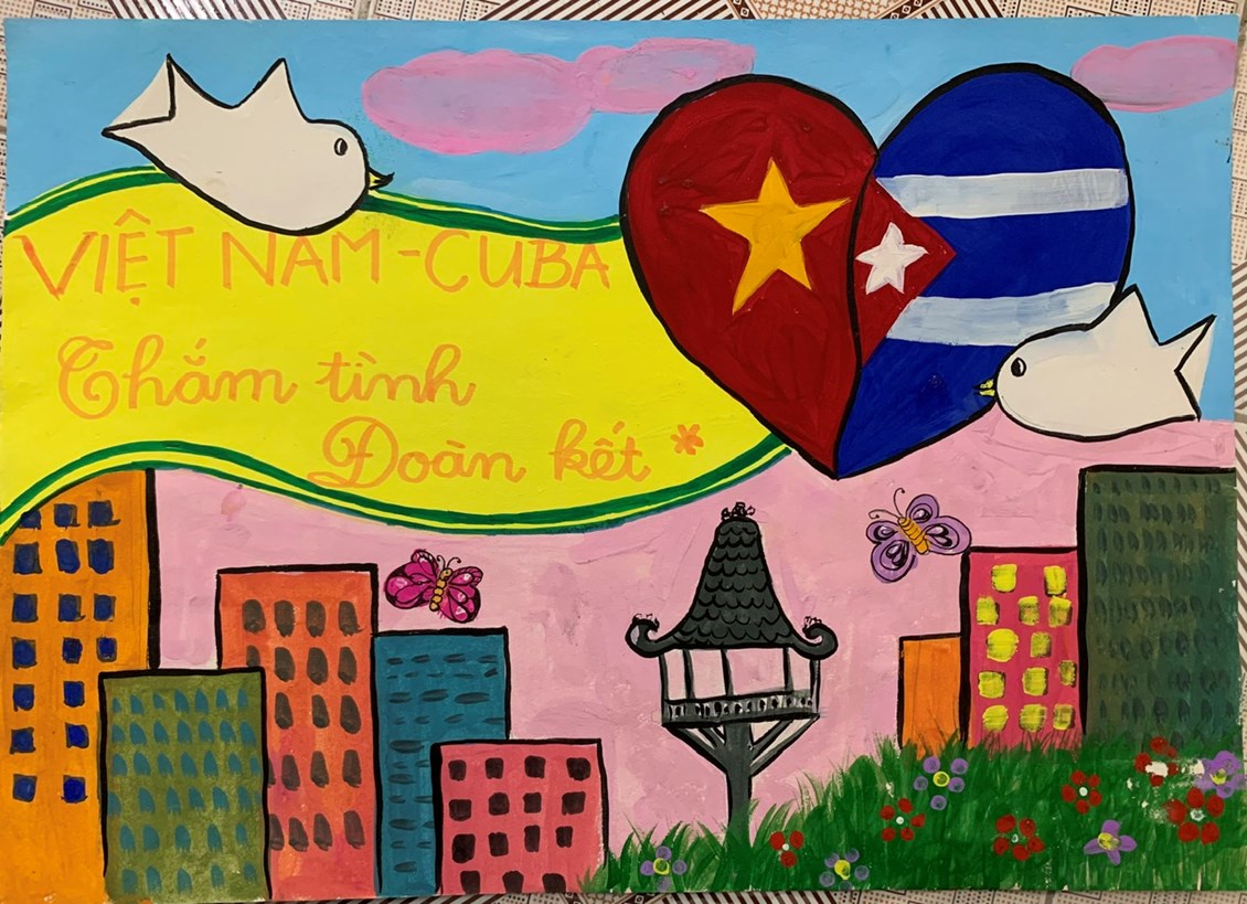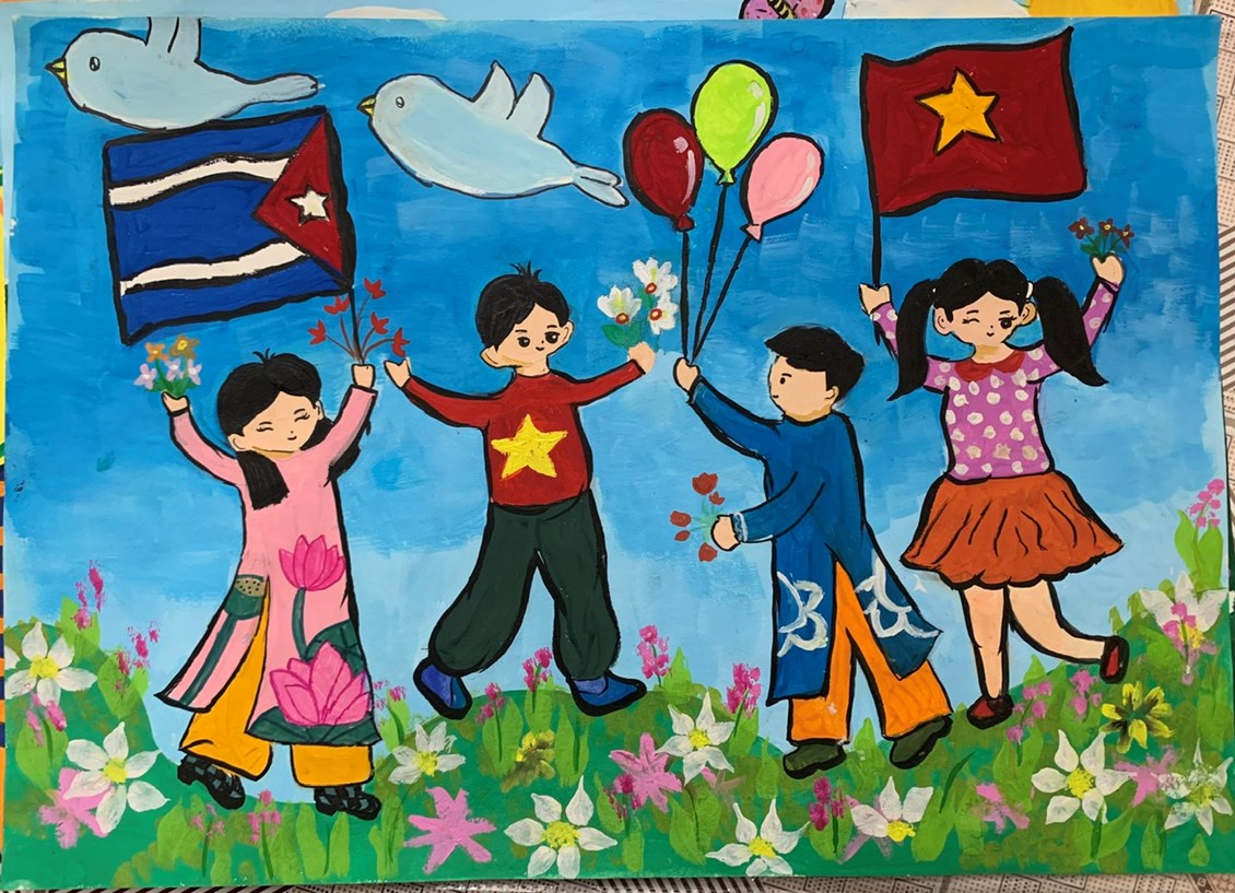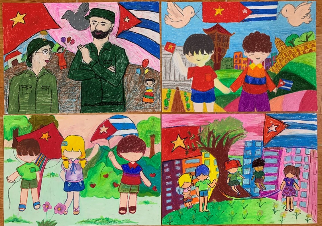 🌈 Nội dung vẽ tranh ca ngợi tình đoàn kết hữu nghị giữa hai nước Việt Nam - Cuba, chào mừng kỷ niệm 60 năm thành lập Uỷ ban Cuba đoàn kết với miền Nam Việt Nam, 50 năm ngày Chủ tịch Fidel Castro lần đầu thăm Việt Nam và vùng mới Giải phóng ở Quảng Trị, Việt Nam. Các bức tranh thể hiện tình cảm, tinh thần đoàn kết của thiếu nhi Việt Nam với nước bạn Cuba đầy yêu dấu.