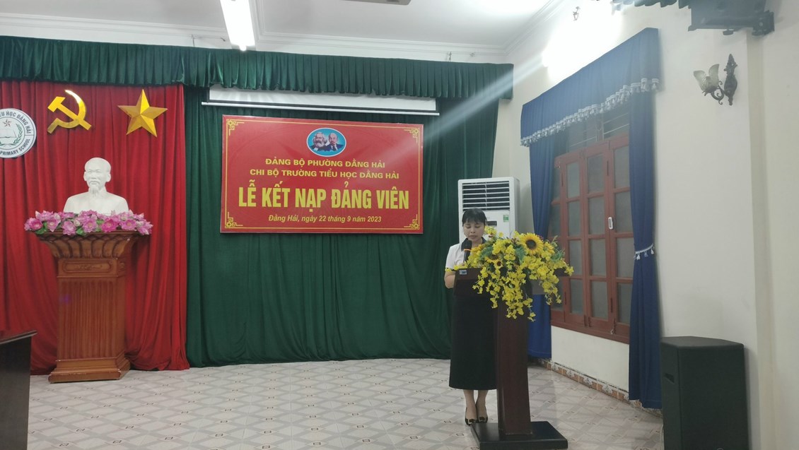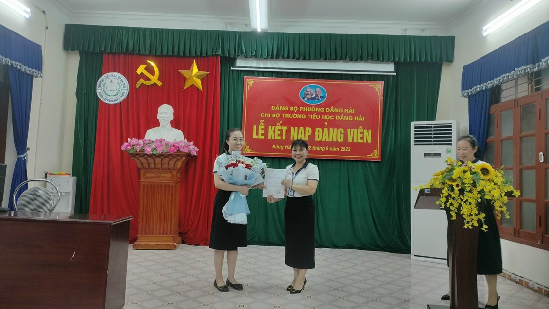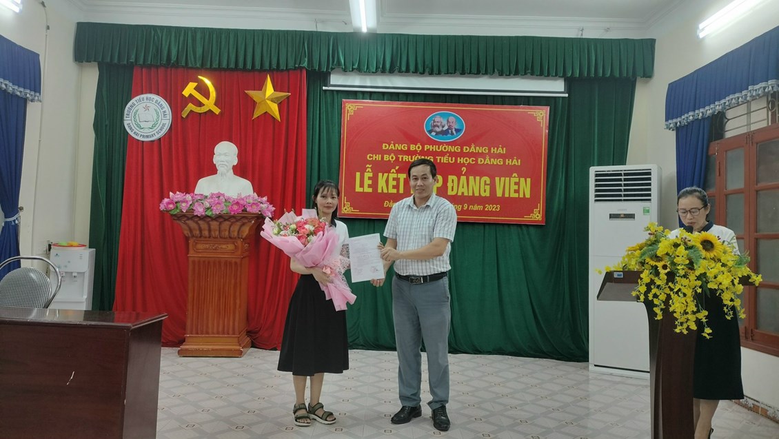 Tham dự buổi lễ có đồng chí Lê Khắc Trung - Đảng uỷ viên - Phó Chủ tịch UBND phường Đằng Hải, đồng chí Đặng Ngọc Bính - Văn phòng Đảng ủy phường Đằng Hải, đồng chí Bùi Thị Hường - Bí thư chi bộ cùng toàn thể Đảng viên chi bộ trường Tiểu học Đằng Hải.
