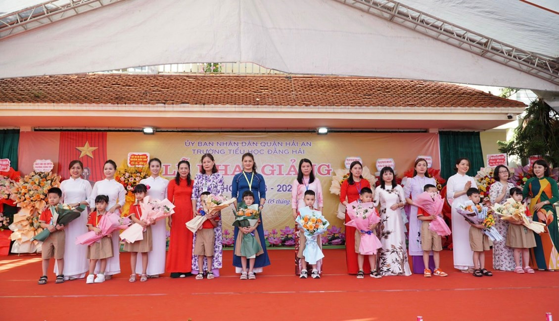 🎈Nhà trường vinh dự được chào đón các đồng chí lãnh đạo Quận uỷ, HĐND, UBND, UBMTTQVN Quận Hải An, các đồng chí lãnh đạo Đảng uỷ, HĐND, UBND, UBMTTQVN phường Đằng Hải và các bậc phụ huynh. Bó hoa tươi thắm từ các cấp các ngành và các đơn vị gửi tặng là lời chúc mừng, là sự khẳng định và tin tưởng của Quận và địa phương đối với nhà trường.