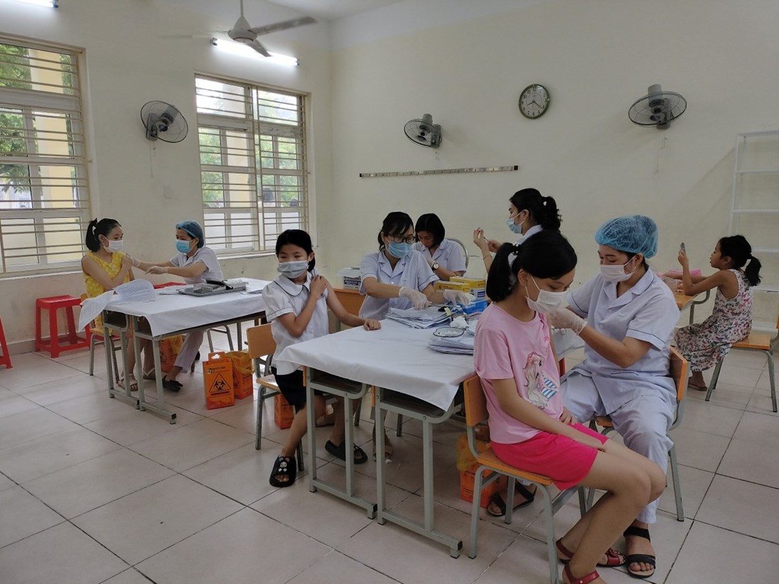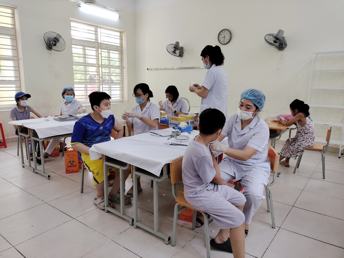 Thực hiện chỉ đạo của UBND quận Hải An, hưởng ứng chiến dịch tiêm vacxin phòng Covid 19 cho trẻ từ 5 đến dưới 12 tuổi, Trường Tiểu học Đằng Hải phối hợp với Trung tâm y tế quận Hải An tổ chức tiêm phòng Covid-19 cho học sinh. Ngày 19/7/2022, nhà trường đã tổ chức tiêm mũi 1 đợt 3 và mũi 2 cho các em học sinh. Tính đến nay nhà trường đã có …… học sinh được tiêm vacxin phòng Covid -19. Sức khoẻ sau khi tiêm của các em đều được theo dõi cẩn thận.