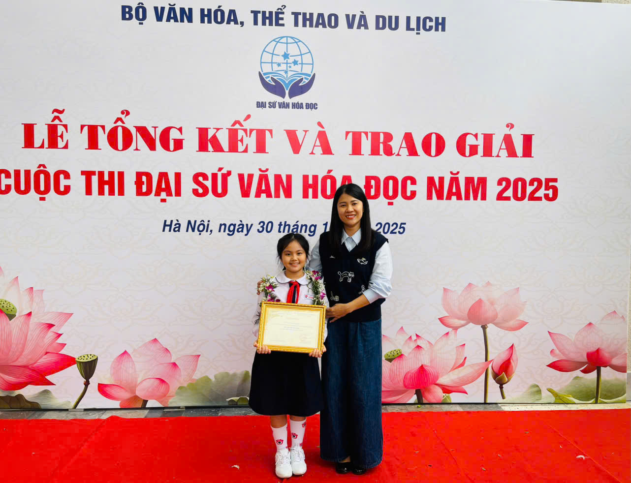 Ngày 30/10/2025, tại Hà Nội, học trò Chu Nhật Anh – lớp 4A7, Trường Tiểu học Đằng Hải đã vinh dự nhận Giải Khuyến khích Cuộc thi “Đại sứ Văn hóa đọc” năm 2025 do Bộ Văn hóa, Thể thao và Du lịch tổ chức. 🌷📚
